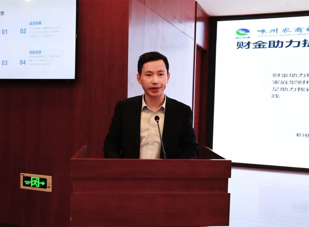 党委委员金潮就财金助力扩中家庭项目进行解读,从项目背景、行动方案、共富产品、工作要求四方面开展具体介绍,并对下阶段的工作推进作了具体部署。